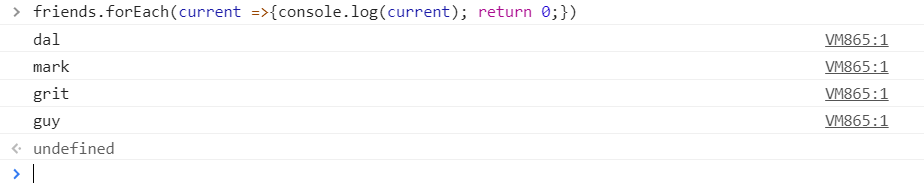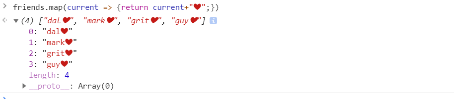 위의 경우에는 배열의 각 item 별로 console.log를 실행하고 0을 리턴했다. 결과 값은 결국 0이므로 4번의 0이 배열로 만들어 map의 결과 값으로 최종 리턴 되었다. 하지만 원본 friends 배열이 0으로 바뀐건 아니다.